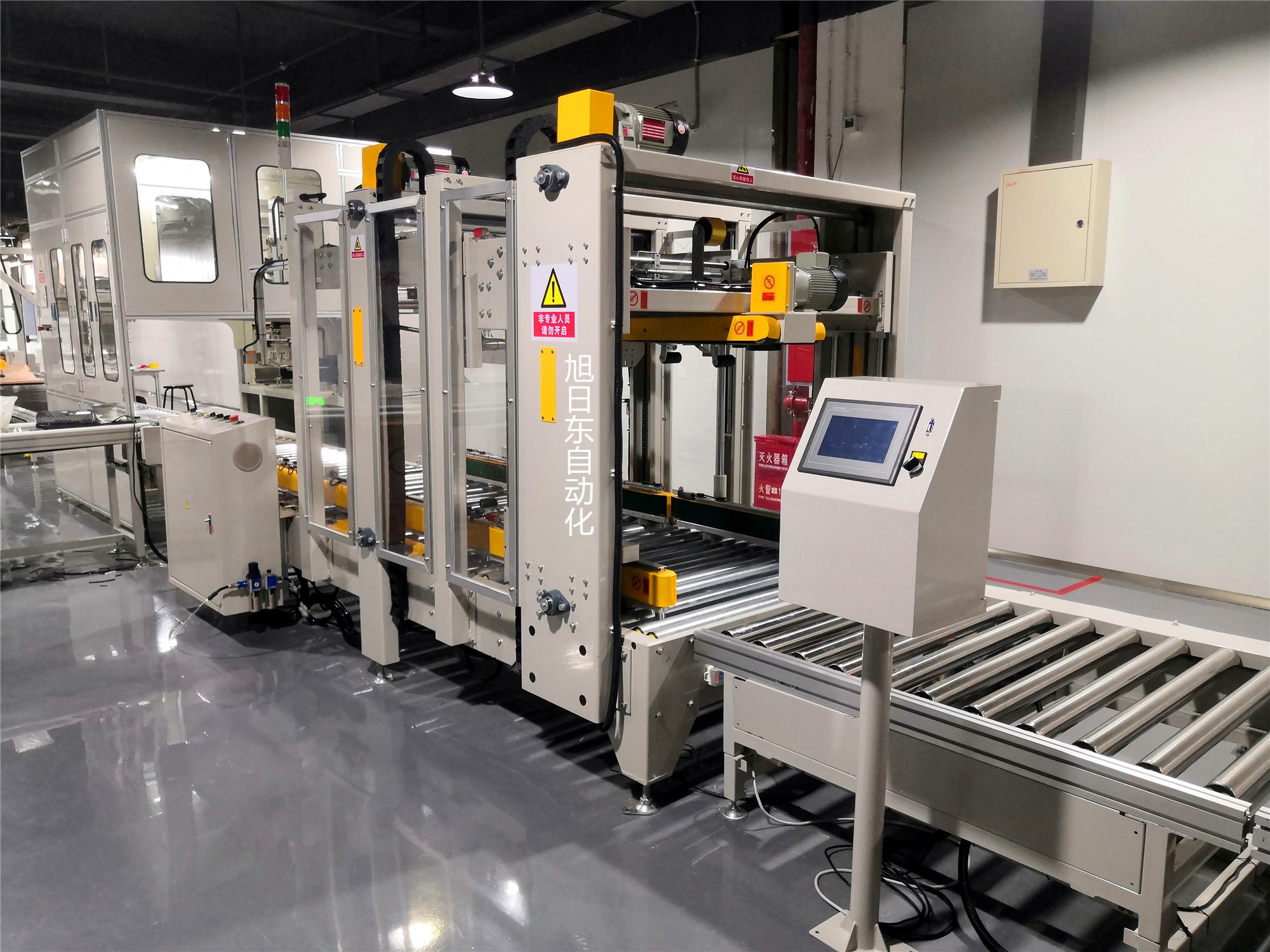 ![]() 全自動在線封箱機+自動稱重 |